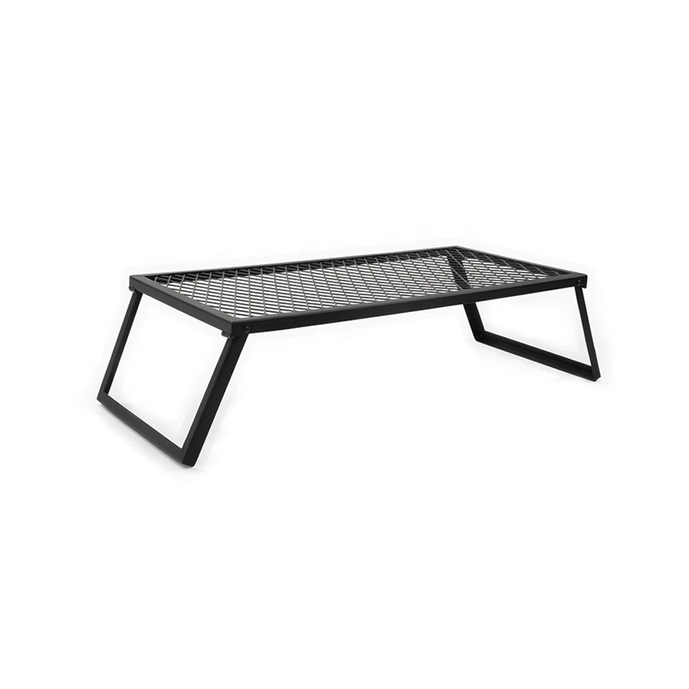 Heavy-duty steel grill grate for open-fire cooking. Portable, simple, and ready to go – a cooking surface wherever you need it. Folding legs make for easy transportation and compact storage. Cook directly on the grill surface for seared steaks, sausages, veggies, and more. Use with our cast iron skillet or Dutch oven for even temperature and increased versatility.