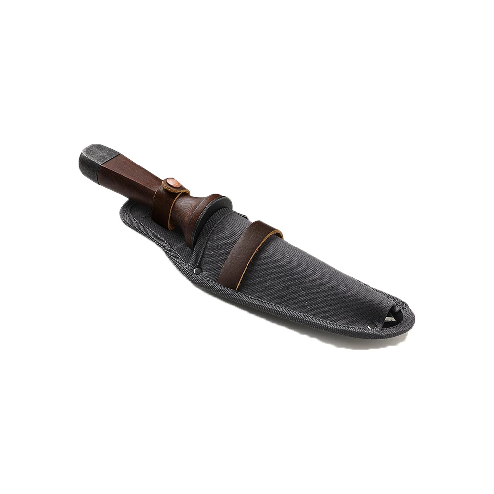 - Materials: 4CR13 Stainless Steel Blade, Walnut Handle, 900D Polyester Sheath with Full-Grain Leather Accents