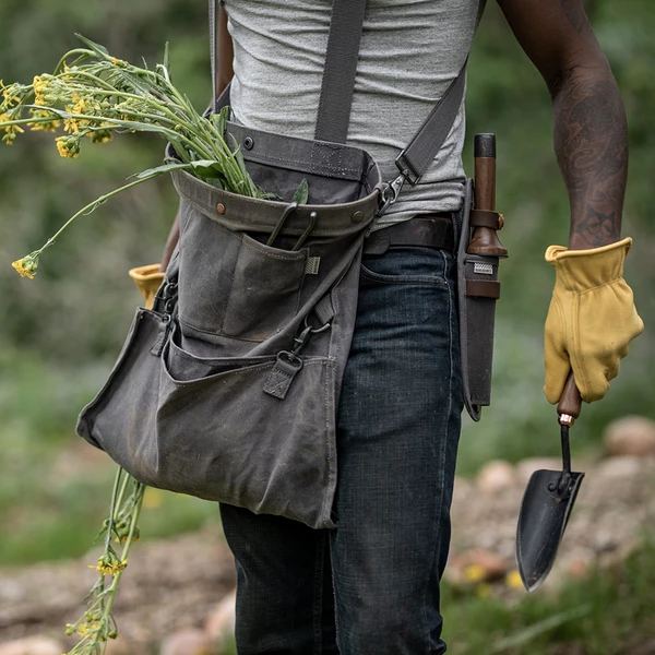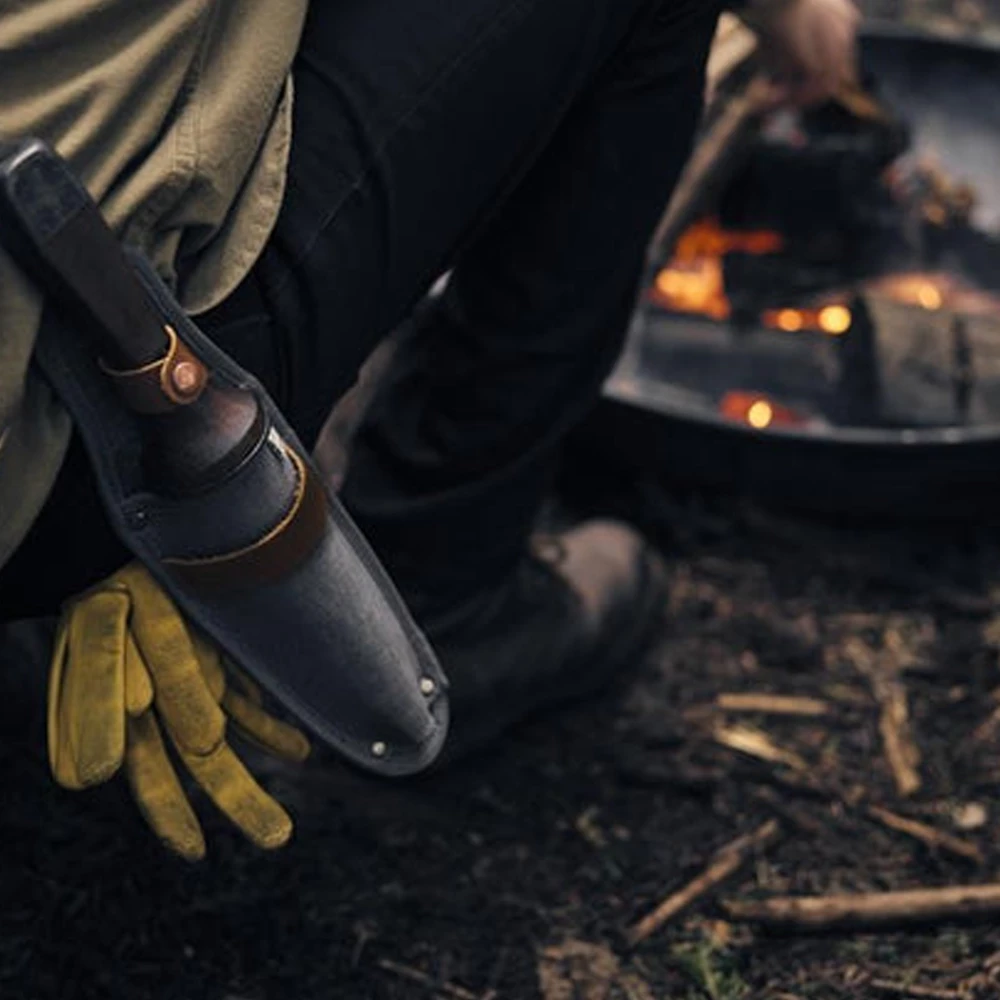 Sheath: The 900D polyester canvas and reinforced lining of the sheath come together beautifully to sustain and preserve the Hori Hori. Its stainless steel belt clip supports easy carrying and accessibility, while the strong handle strap restricts the blade from slipping or moving. The Hori Hori Sheath’s open end allows for easy cleaning and prevents soil buildup, preserving the Hori Hori’s blade for years of continued use.