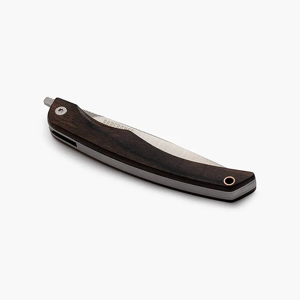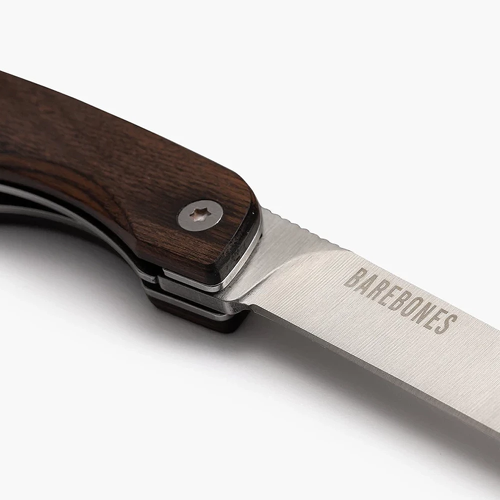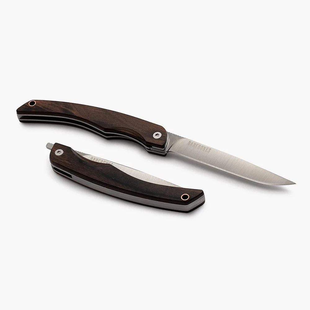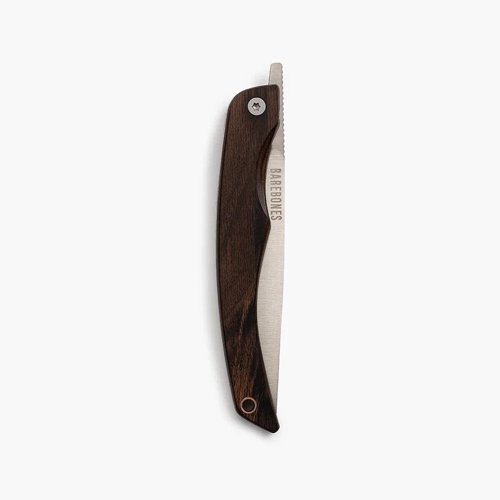 A high-quality culinary knife with pocket knife practicality. The Solo Folding Knife lets you enjoy your favorite foods from the patio to the picnic blanket. Its folding and locking stainless steel blade provide a safely packable cutting edge, and the hardwood handle and elegant design make it handsome enough for any setting.
