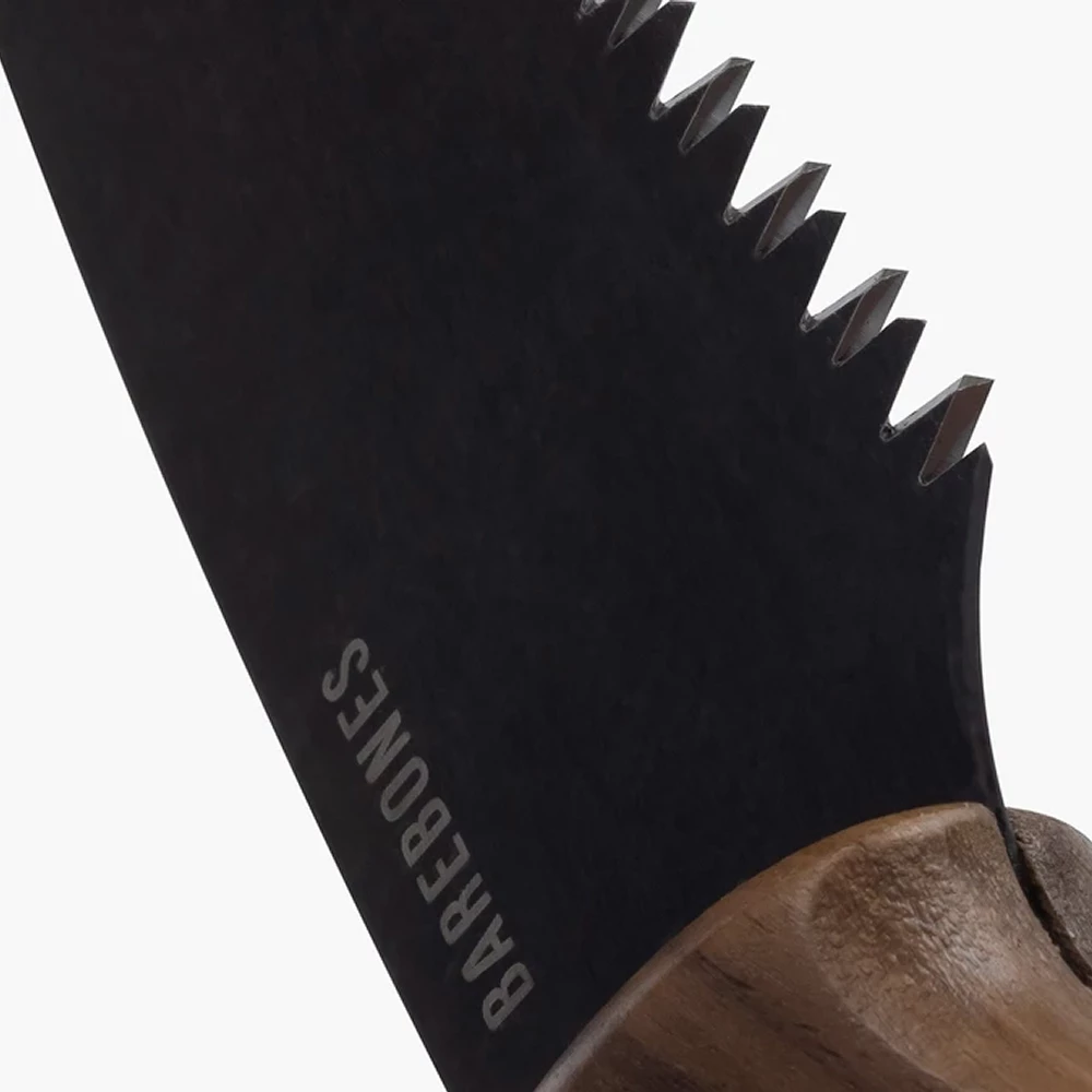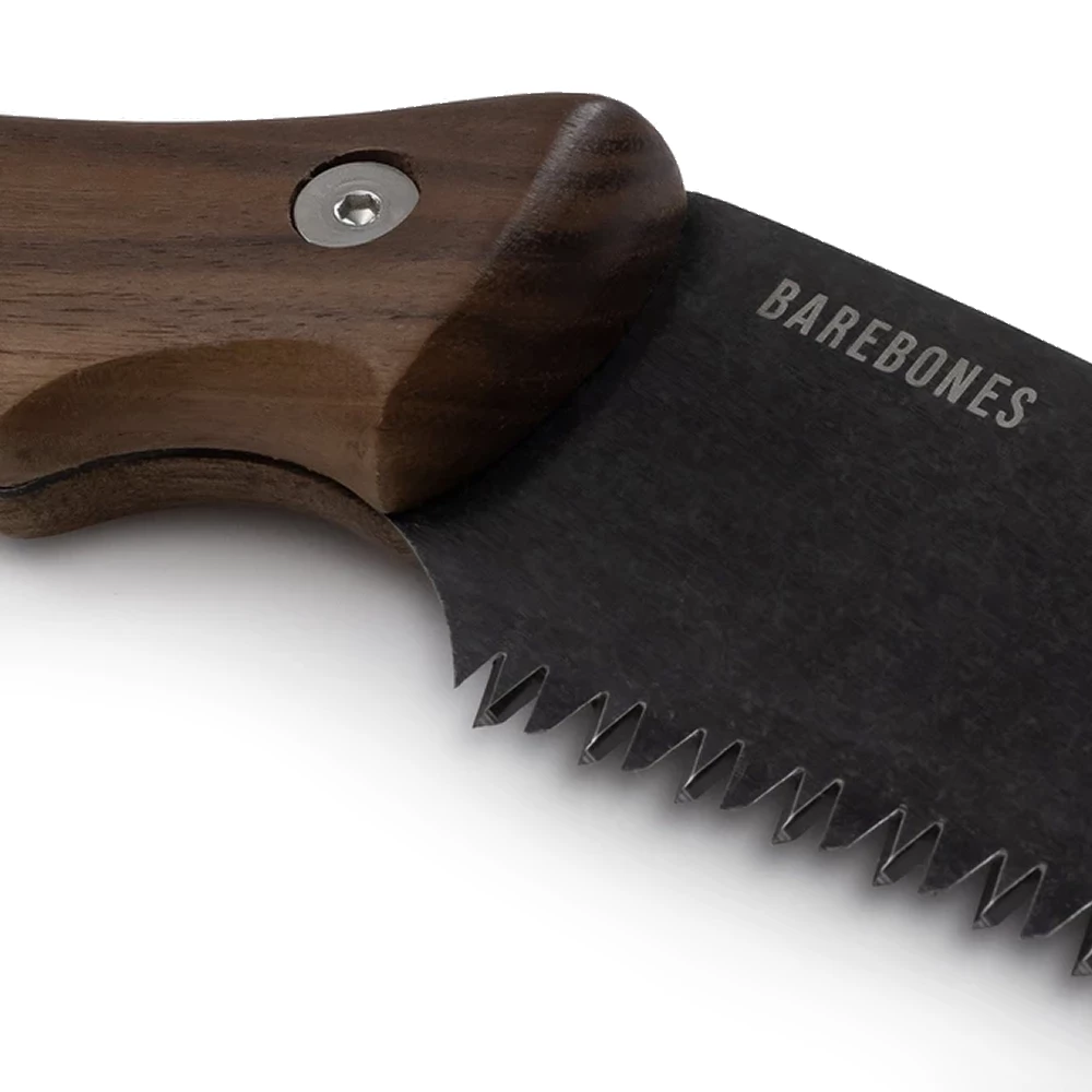 Inspired by a traditional Japanese hand saw, the Timber Saw provides a quick, clean approach ideal for cutting smaller pieces of wood at a campsite, cutting off branches and deadwood, and pruning trees. While traditional hand saws rely on a pull-push motion, the simple curved blade and aggressive teeth of the Timber Saw requires a push-strike motion. The result is a super effective, safe, and fast cut. Ergonomic and durable walnut handle fits smoothly in your hand for perfect, even pressure and pulling strokes.