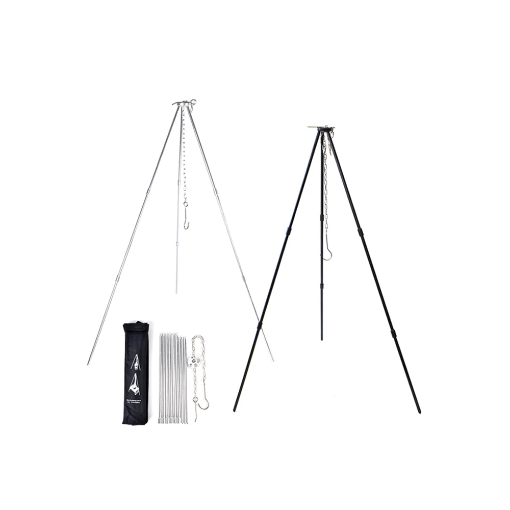 The Camping Tripod Pot Hanger had heavy duty sturdy three leg design for stability, easy set up and storage. The nickel plated chain and ”S” hook for easy cooking height adjustment. Perfect for hanging ovens, tea pot, water pot or coffee pot over a cooking fire. Also can be used to hang lanterns, water jugs, and drying clothes. It is suitable for camping, hiking, fishing, caravan, boating, picnic, travel and other outdoor activities.