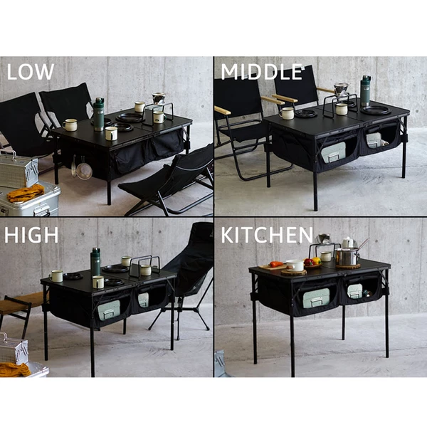 Outdoor table with large storage space under the table. It can be used as a convenient three-stage storage shelf if you put it in the cargo compartment of the car as it is. Even when camping, you can clean up your tent site by storing camping gear and accessories that tend to be cluttered.