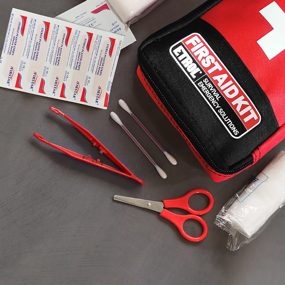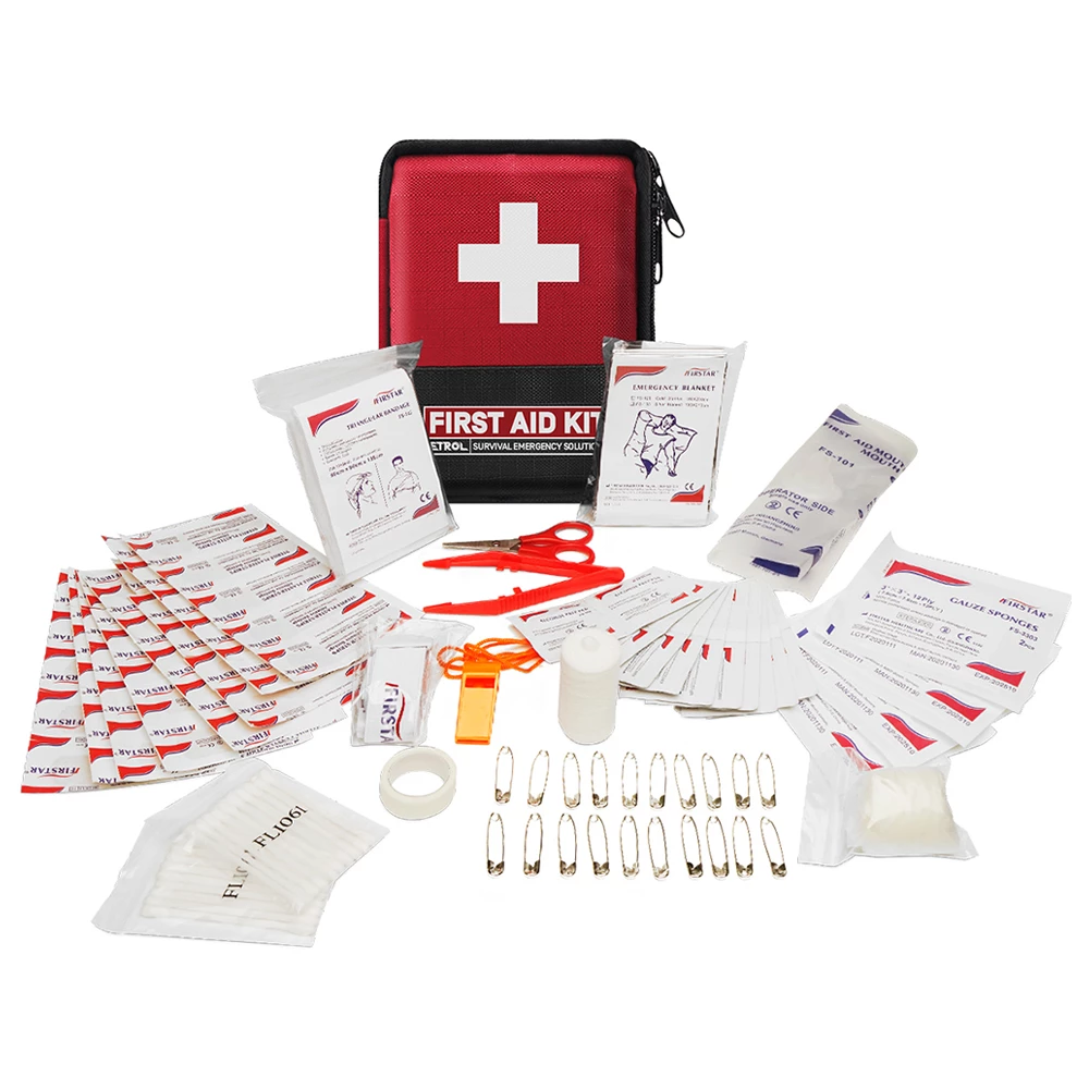 First aid kit contains the most important first aid supplies on the market for a variety of treatments.