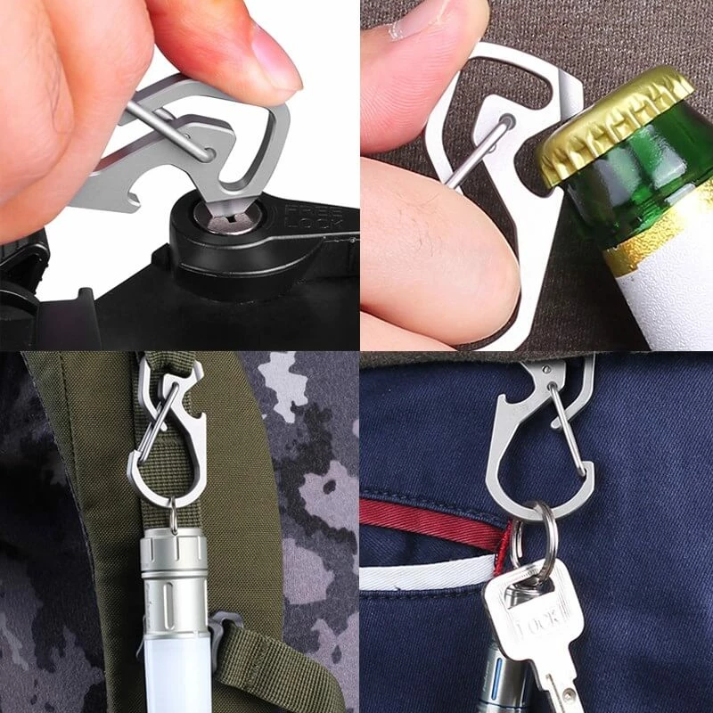 This ultra-compact, multi-purpose snap hook is the perfect tool to help you quickly access items hooked to your belt or pack. Featuring a quick-release latch, bottle opener, and screw driver, this snap hook is made of very durable corrosion resistant TC4 titanium alloy. Weighing only 0.32 oz., this super lightweight snap hook will be a great addition to your every day carry.