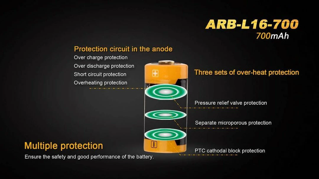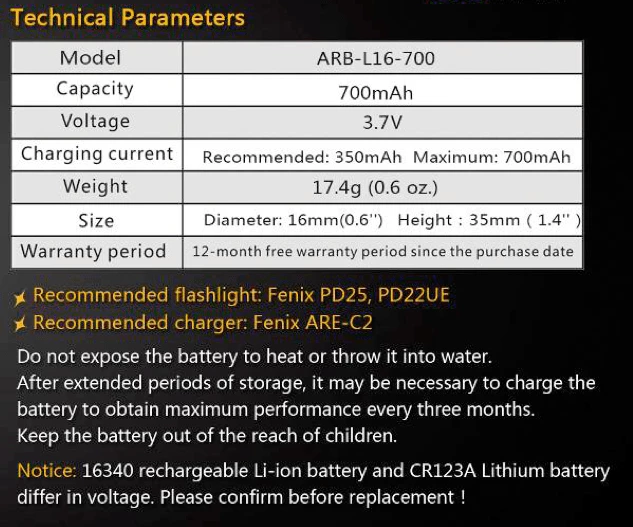 - Fenix ARB-L16-700 16340 Rechargeable Battery 700mAh