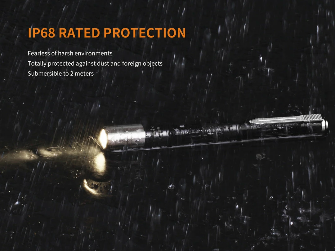 The Fenix LD05 V2.0 EDC Penlight is a easy to use dual lighting source penlight with warm white light and UV lighting also. The all new Fenix LD05 V2.0 uses a 90 CRI CREE XQ-E HI LED and a 365nm UV LED. Operating the Fenix LD05 is simple, the stainless steel tail switch controls all three warm white light outputs and the UV light output. A single click turns the Fenix LD05 on, and half clicks allows you to increase the outputs. The Fenix LD05 V2.0 is powered by two AAA batteries which deliver an amazing 100 Lumens of output. This light is perfect for doctors and dentists as well as helps with medical inspections in low-light areas. The powerful UV light also provide easy detection of counterfeit currency. Get your Fenix LD05 V2.0 today!