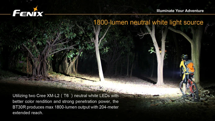 - Utilizes two Cree XM-L2(T6 )neutral white LEDs, max 1800 lumens output