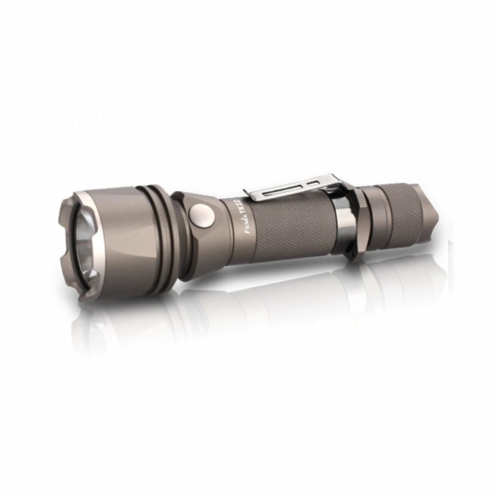 The Fenix TK22 Flashlight 2014 Edition exceeds its worthy predecessor with 920 lumen max output and four brightness levels. Durable, reliable and equipped with Strobe mode, this flashlight features a ringless beam pattern and two battery options for full-on flexibility.