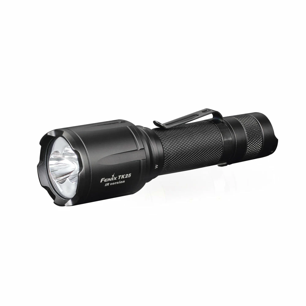 You asked and Fenix has delivered with an infrared flashlight! The Fenix TK25IR version is a tactical flashlight dedicated to policing, hunting and other tactical applications requiring an IR flashlight. The innovate dual lighting sources switching structure allows easy switching between the white and infrared lights by infinitely turning the flashlight head in either direction. This method of mode switching optimizes lighting output and effectiveness.