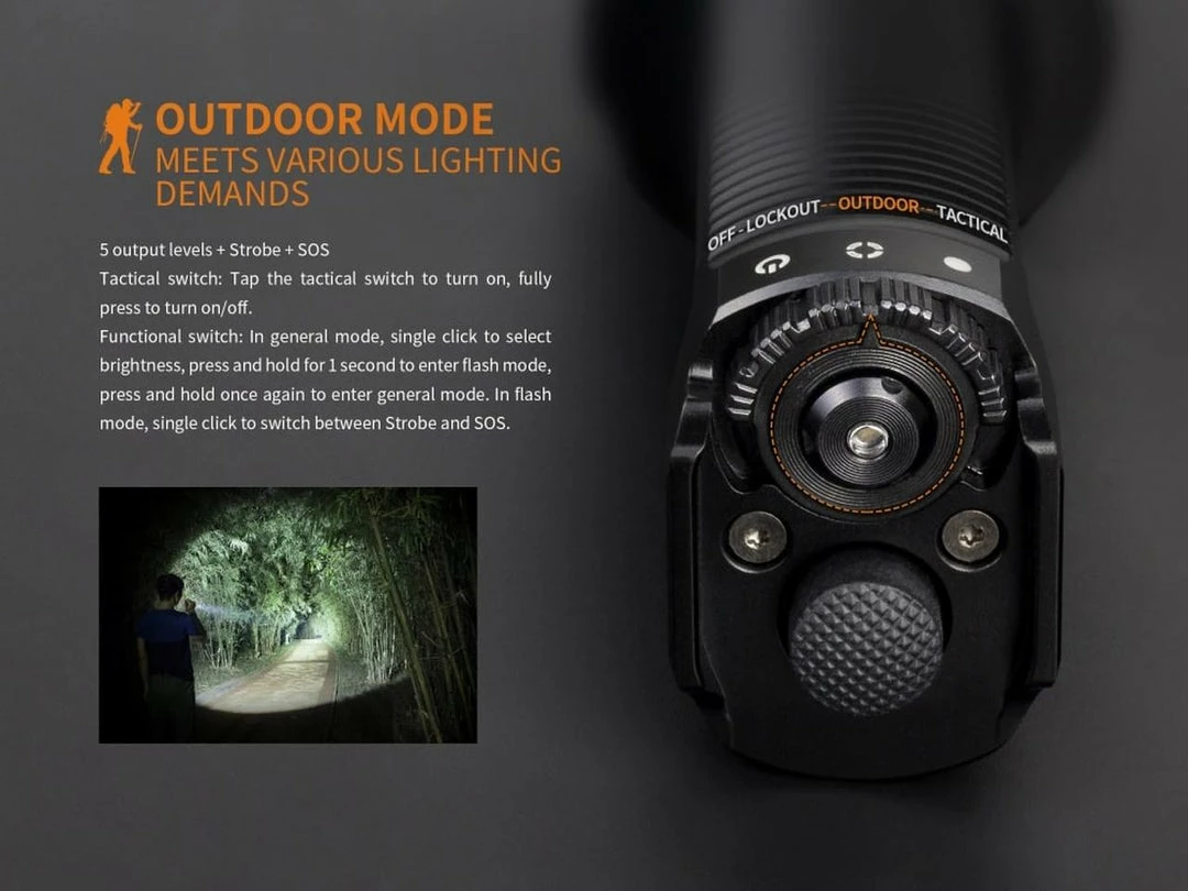 - Toggle switch for free switching between tactical, outdoor, and lockout modes
