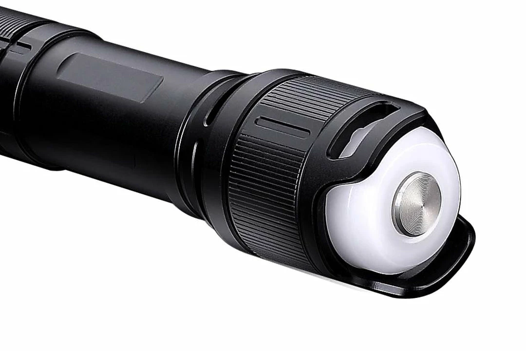 The Fenix TK47 Tactical Duty Flashlight, with its long range illumination, is designed with the security and law-enforcement professional in mind. Fitted with a Cree XHP35 HI neutral white LED and deep reflective cup, resulting in a beam of almost 2,300 feet (700m). The TK47 Tactical Duty flashlight also includes a multi-funtional tail light that features a red light for signaling and a soft lantern light for duties such as report writing. This independently controlled tail light has four modes including a low-lumen white or red light for reading and a red Flash/SOS. The neutral white LED provides better color rendering allowing for quicker identification of objects. We believe you’ll find this light to be perfect for security and law-enforcement professionals’ daily activities. NOTE: The light will not work with flat-top 18650s. We recommend any of the ARB-L18 series from Fenix.
