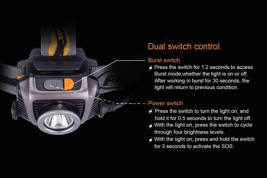 Streamlined and enhanced to produce 900 lumens; a 240% performance boost. The separate battery compartment provides excellent balance for its four AA batteries. With a rugged aluminum housing, the HP15UE is a great choice for demanding nighttime adventures.