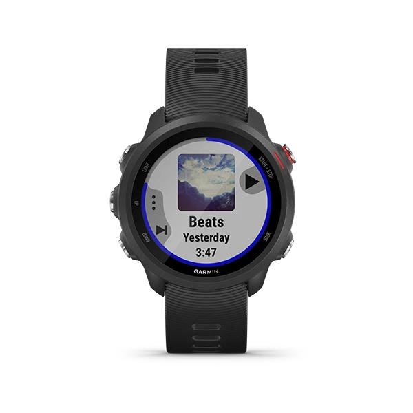 You do the running. Forerunner 245 Music does the thinking. It even gets to know you, mile after mile and song after song. This GPS smartwatch has storage for your favorite tunes, so you can keep moving to the music without having to lug your phone along. It also tracks your stats, crunches the numbers and gets to know all about your performance, your running form, your training history and even your goals. All you need to focus on is putting one foot in front of the other.