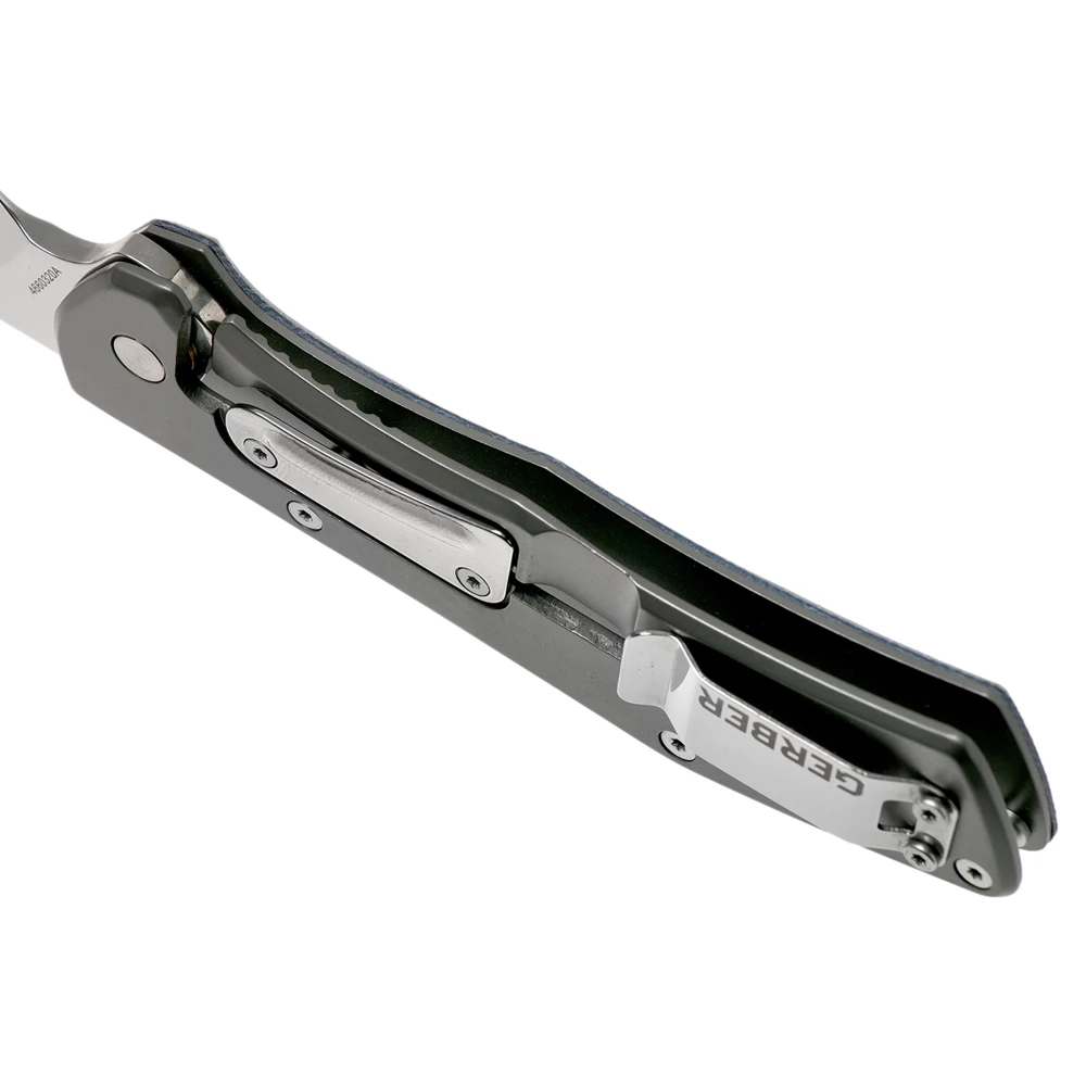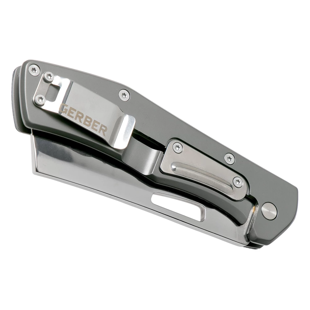 The Gerber Flatiron is a solid pocket knife with a cleaver-style blade. This a blade shape you often see with butcher’s knives. Because of the straight edge this type of shape is perfect for use in the kitchen. The handle is made from stainless steel and micarta. The rough surface of the micarta scale offers enough grip to make sure the knife won’t slip from your hand as you use it. When opened the blade is locked with a robust frame lock mechanism. An interesting detail is the enormous overtravel stop. This prevents that the lock bar is pushed too far from the frame as you unlock it. The overtravel stop is larger than average and enhanced with a subtle elevation. As such your fingers rest on the overtravel-stop, and not on the lock bar. This makes opening the Flatiron a lot easier. The wide, square pocket clip is also very unique and ensures that you can comfortably carry the knife on your pocket.