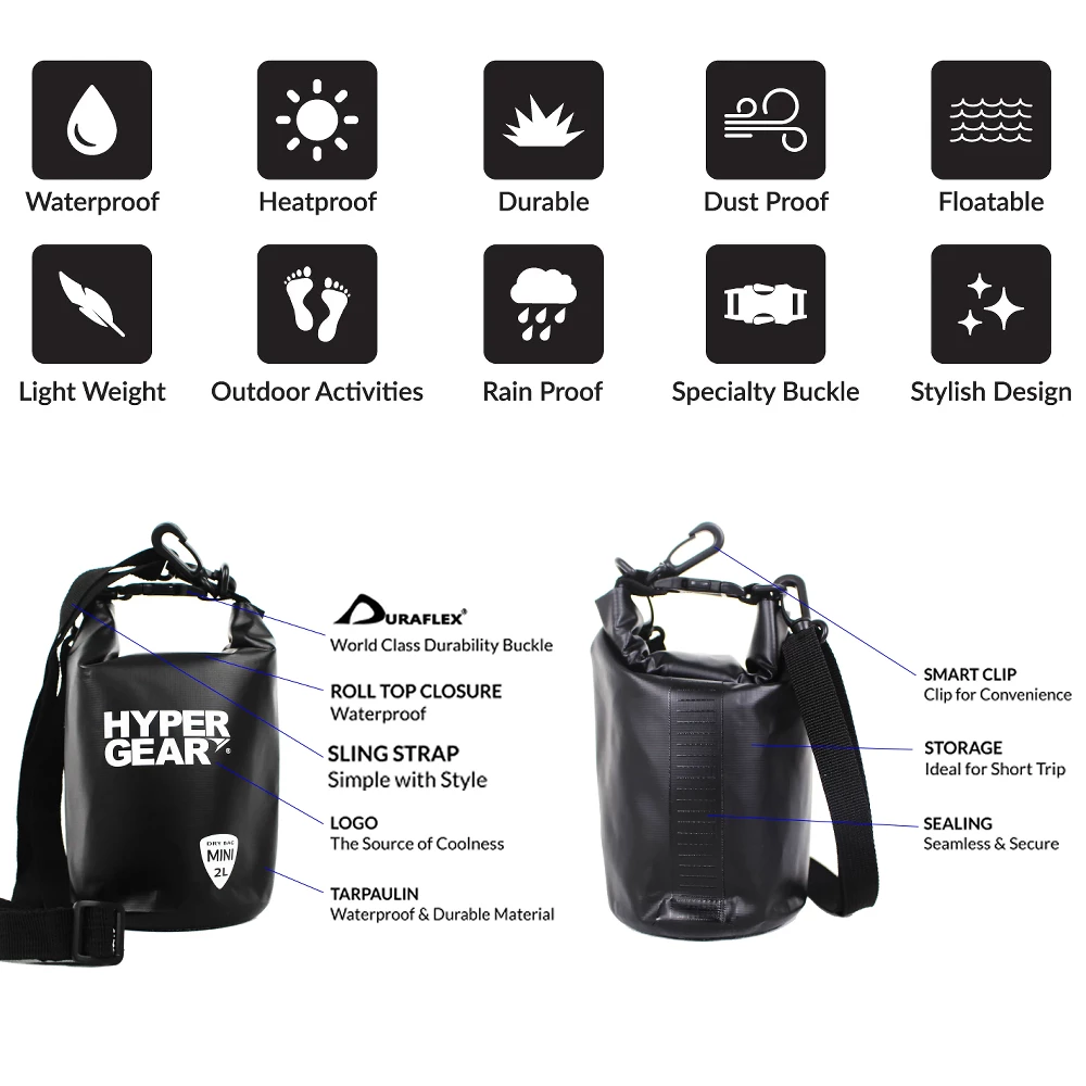 Our all time favourite, the fun and functional Dry Bag Mini that serves the purpose for outdoor activities, travel or even just casual usage. Protect your phone, gadgets, tools, ID or cards on the go. Use it as sling bag, inner compartment or clip on any bags as instant waterproof solution. This little dry bag is the best definition of MINI but STRONG and VERSATILE.