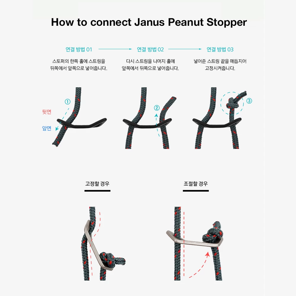 Optimal angle stopper to hold the string and it can be used firmly by fixing it securely during installation with a combination of bends. This is a stopper that can be used freely without hand strain because it is made in a peanut shape that is easy to hold and use.