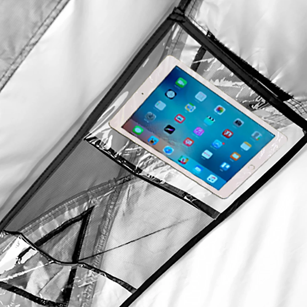 A black coat tent with a stable construction. Install it on a night bed and use it conveniently because it is not directly in contact with cold and uneven ground. A rigid buckle, which can be connected to the field chair, is located at the bottom, and can be easily secured by sliding it back to the bottom of the field bed.When installing canopy, the front cover can be extended to create a perfect shade or to protect prips when the tent is opened.The inside of the Black Coat has an excellent shade effect by applying a silver coating and effectively blocking the light by to provide a cool shade anytime, anywhere. The fabric is made of CU2,000 per cent fabric and can be easily used anywhere at any time as it can be held in a sudden showers.