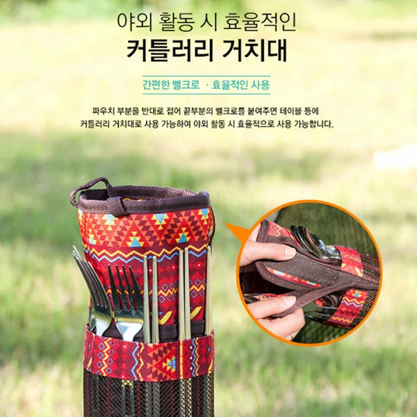 - Includes: Spoon X4ea, Chopsticks X4ea, Fork X4ea, Pouch