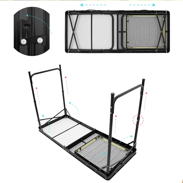 A cooking table that can be conveniently used as a cabinet that is made of iron material that is resistant to hot heat and moisture and can be stored for many purposes. It is easy to fold because it is not cumbersome to assemble, and you can carry it conveniently anywhere anytime with a dedicated carry bag.