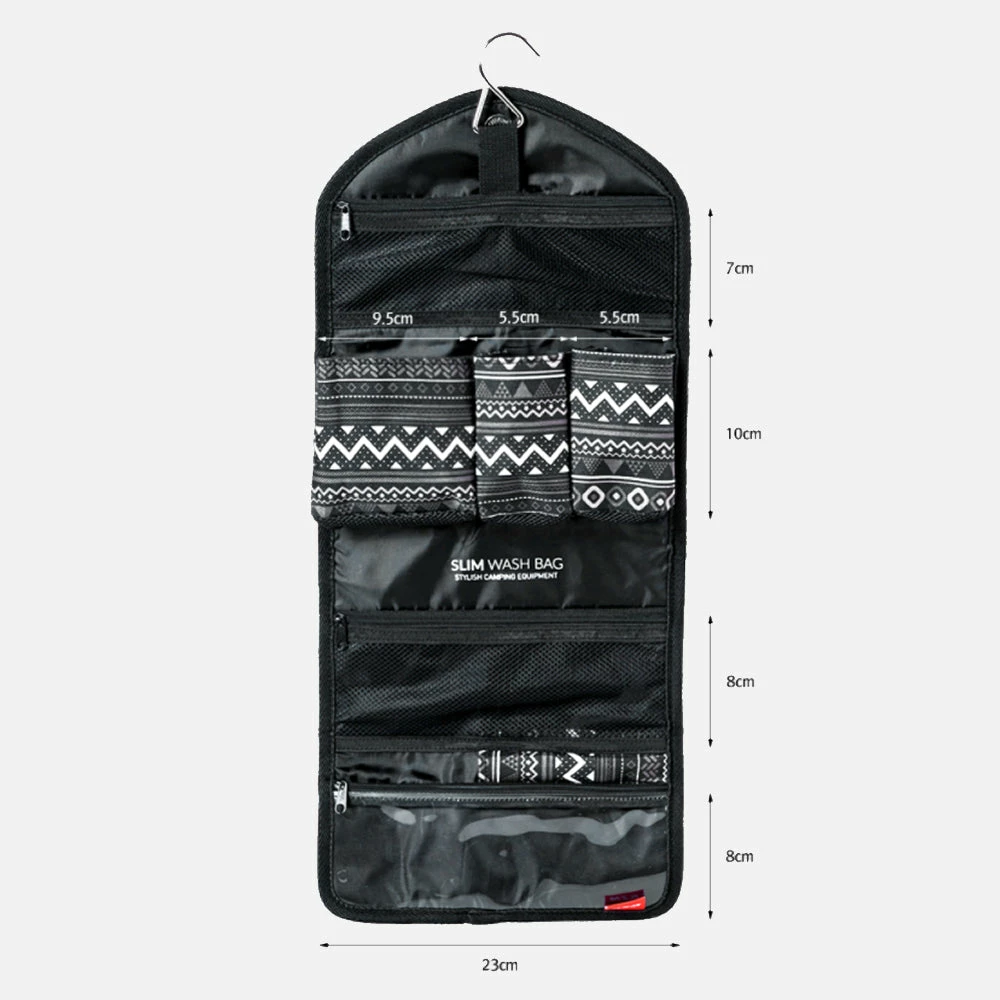 KZM slim wash bag Conveniently stores various toiletries and cosmetics during outdoor activities such as camping. High-breathable mesh material on the top, middle and bottom allows quick drying even when wet. The sturdy polyester storage case is water-resistant and can safely store the contents.