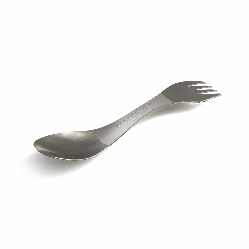 The Light My Fire Titanium Spork is a perfectly designed outdoor eating utensil. Designed especially for Light My Fire by Scandinavian designer Joachim Nordwall, the Titanium Spork is a spoon-fork-knife combo with a serrated edge on the side of the fork and a slightly textured center that provides an anti-slip grip. Titanium is one of the toughest, most durable alloys on the planet and has excellent resiliency. The polished titanium surface of the Titanium Spork offers a high biocompatibility that is non-toxic and does not produce a metallic taste. Non-corrosive and non-magnetic, the Light My Fire Titanium Spork is the perfect meal companion for backpacking, travelling, and everyday use.
