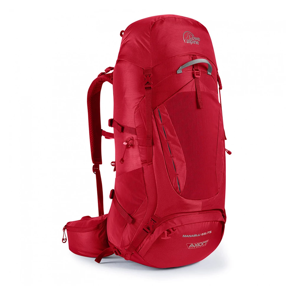 The Lowe Alpine Manaslu 65:75 is a true all-rounder. This beautifully finished trekking pack take just as easy to carry during a week walking in Ireland during a trip to Australia or New Zealand.The airflow Axiom 5 carrier is very comfortable, but also provides the necessary support and a pivoting hip belt. This large versue has a longer back, shoulder straps and hip belt.
