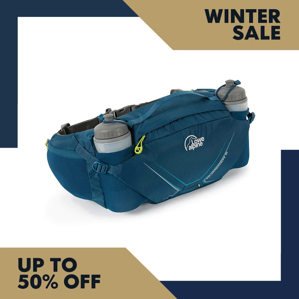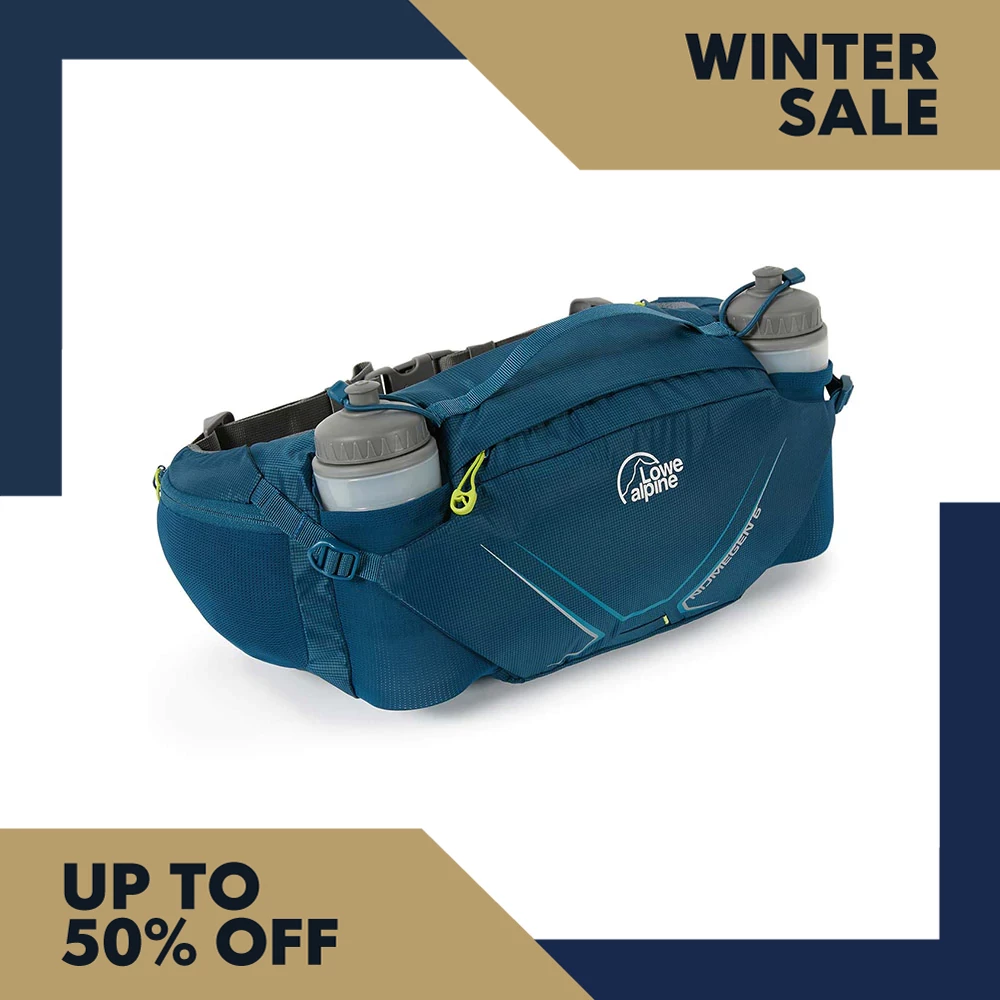 Made using a super tough 210D ripstop nylon with a water repellent coating, the Nijmegen will resist abuse for years and will protect the contents from light rain. Around the back, you get a padded airmesh panel for increased comfort against your back and a pre-curved design to prevent it slipping down during intense activity. The Nijmegen features a whole plethora of storage options – the main compartment is surprisingly generous in size and can be synched down when it’s not filled to capacity. This little pack also comes with two waterbottles that sit comfortably and don’t bounce around. You also get two zippered pockets on the hipbelt and a rear zippered security pocket to keep little bits separate.