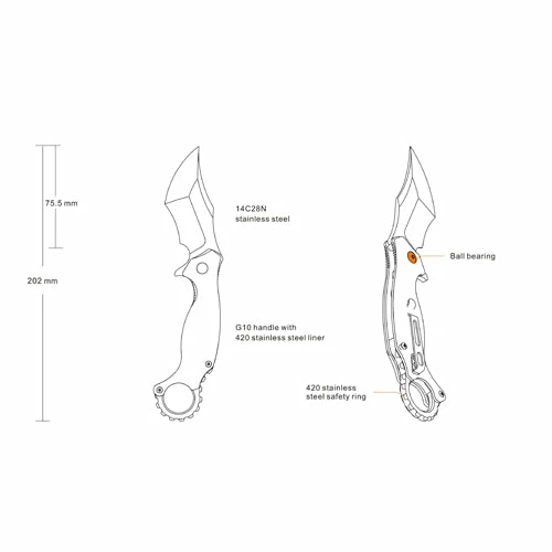 - Blade Material: 14C28N stainless steel (58~60 HRC)