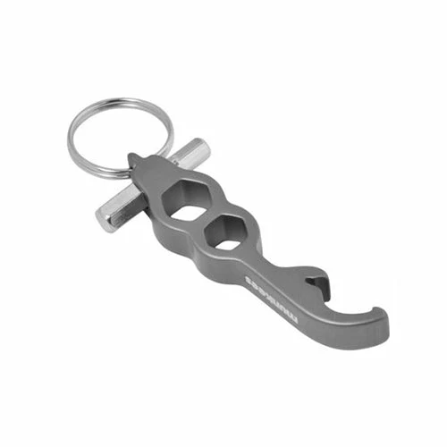 This multi functional bottle opener from Munkees features not only a bottle opener, but also two sizes of hexagonal ‘allen key’ head and two sizes of hexagonal nut spanner. A must for any cyclist, mechanic or DIY enthusiast. It is anodised in a bright finish for durability and will soon earn it’s place on any set of keys.