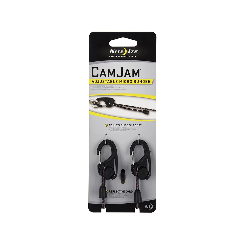 - Includes 1 x 14″ section of highly reflective 0.012″ | 3mm bungee cord along with 2 attached CamJam Cord Lighteners