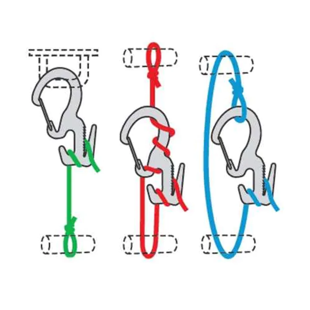 - Product Specifications S: Fits rope sizes 1/16” (0.2cm) to 3/16” (0.5cm) | Maximum Gate Width: 3/8” (0.9cm) | Load Limit: 50 lbs. (22.5kg) | Product weight: .5 oz. (14g) | Product dimensions: 1.7″W x 2.6″H x .2″D (4.3 x 6.7 x 0.5cm)