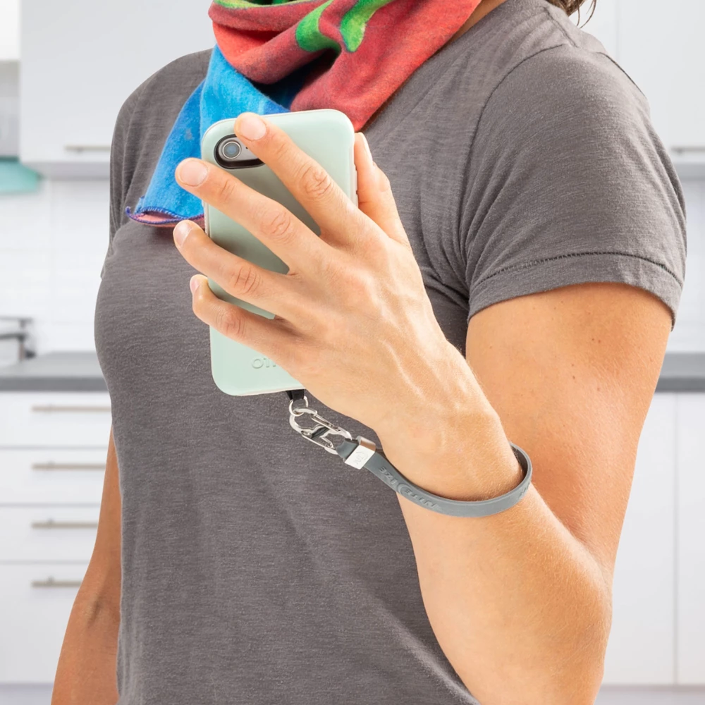 This Hitch Phone Anchor + Stretch Strap is designed to keep your phone and other personal belongings close. Keep sunglasses, hand sanitizer, keys, or lip balm safe and secure with the stretchy, grippy, silicone strap. The Hitch Phone Anchor easily slides under your phone case and stays out of sight and is attached to an included S-Biner MicroLock which keeps the stretch strap in place. This helpful accessory is available in three colors: blue, charcoal, and white sparkle.
