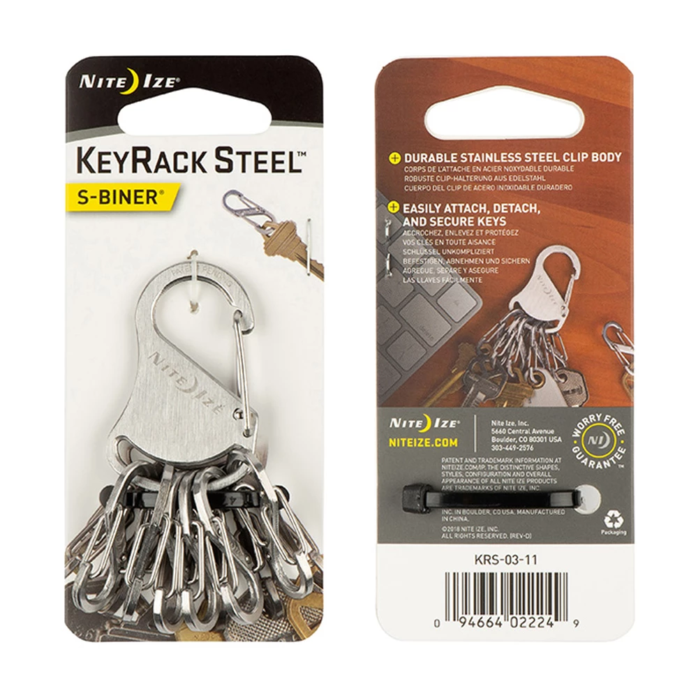 - Features a durable stainless steel carabiner clip which allows you to clip the Key Rack to an existing key chain, purse, jacket, strap or other convenient location.