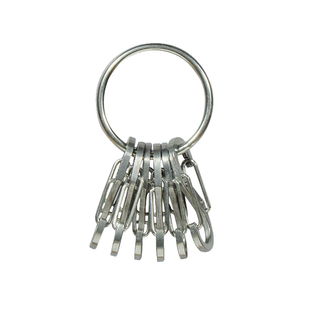 The KeyRing is a simple, handy, and secure way to organize and carry your keys. Its solid, continuous stainless steel ring comes with six #.5 stainless steel S-Biners that are perfectly sized to hold six separate keys, or use one to attach the whole unit to a second key ring, belt loop, purse strap, or zipper pull. The S-Biners remove and reattach quickly and securely, making it easy to share keys with family members, valets, babysitters, or for taking a single key with you when you’re out for a run or ride. More S-Biners can be ordered separately; the KeyRing can hold plenty of them.