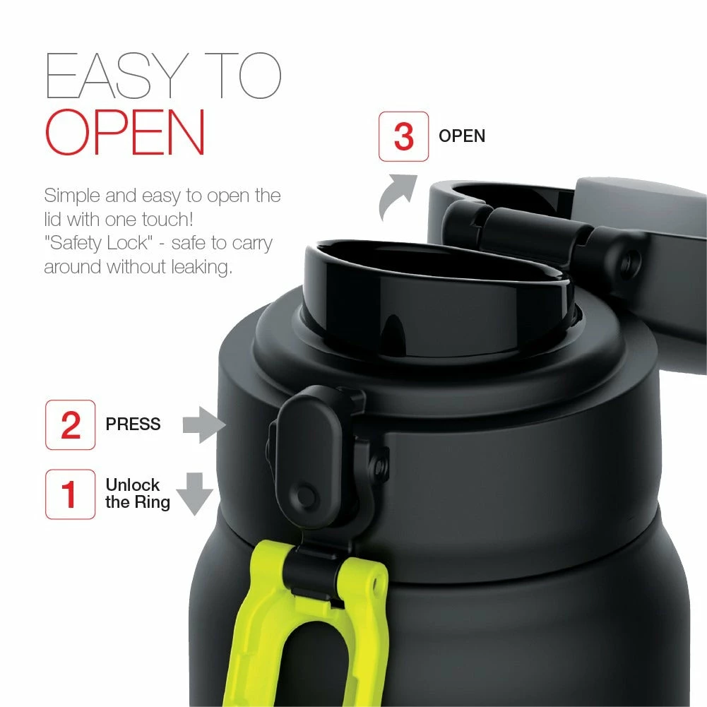 Sports drink safe slim, portable and easy to drink, large capacity one-touch open mug. Easy one-touch opening with one hand. Comes with a locking ring for easy carrying. Slim, easy to hold and drink. Includes cover to protect the bottom of the bottle from scratches and impacts.The mouth is comfortable and easy to drink. Sports drink friendly bottle The inner bottle is made of SUS 316 that is resistant to salt.