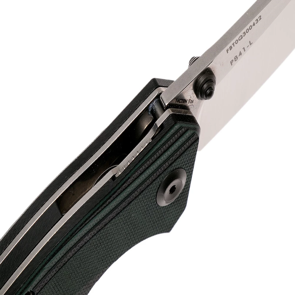 P841-L meets the demands of outdoor lovers and knife users. Besides flipper, the knife is fitted with a thumbstud in each side of the blade, it is ambidextrous for both hands. In addition, the ball bearing pivot makes the blade deployment more smooth. The locking mechanism which consists of a stainless steel liner lock and a back safety lock is highly reliable for blade fixing. The 3.5-inch long blade offers a fine tapered tip to pierce and a long blade point to slice. For secure-grip, the G10 handle is properly textured and contoured.