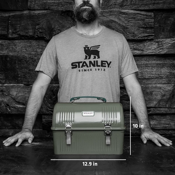 As far as vintage lunch boxes go, this one’s a real classic. Timeless design. Durable construction. And enough room to hold all your food (lunch, snack, second snack and more). There’s even a metal bracket just inside the lid that can keep your full-size Stanley Vacuum Bottle or Mug secure.