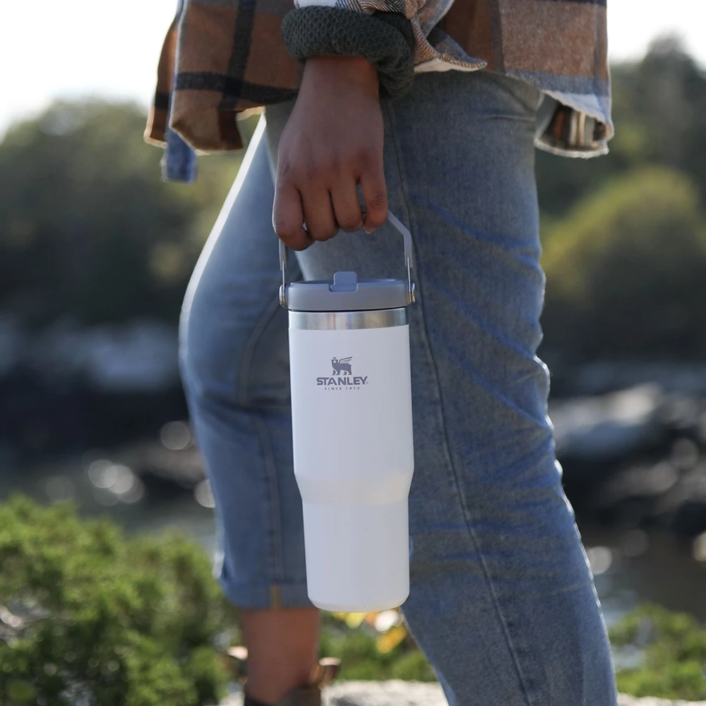 Hit the road to adventure or a high-intensity spin class at home. This tumbler ensures that you always have crisp, cold hydration in hand. The ergonomic shape and built-in flip straw mean you can sip easily and effortlessly. It snaps tight to stay fully leakproof. Stanley’s double-wall vacuum insulation keeps your drinks icy cold and a rotating handle makes it easy to take anywhere.