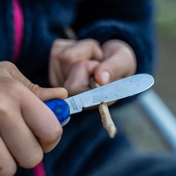 - Tools: large blade with rounded tip, Bottle opener, Can opener, Screwdriver 5 mm, Wire stripper, Wood saw, Key ring, Toothpick, Tweezers